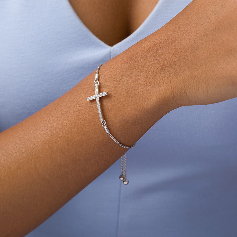 Have a question about 0.10 CT. T.W. Diamond Sideways Cross Bolo Bracelet in Sterling Silver - 9.5"?