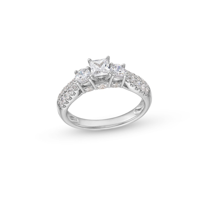 1.23 CT. T.W. Princess-Cut Diamond Past Present Future® Double Row Engagement Ring in 14K White Gold | Peoples Jewellers