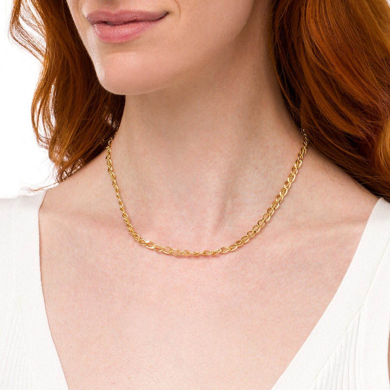 4.8mm Diamond-Cut Brilliance Bead Accent Curb-Style Chain Link Necklace in 18K Gold - 18" | Peoples Jewellers