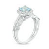 6.0mm Cushion-Cut Aquamarine and 0.22 CT. T.W. Diamond Frame Art Deco Bridal Set in 10K White Gold