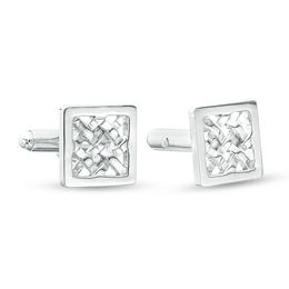Square Frame Criss-Cross Pattern Cuff Links in Sterling Silver