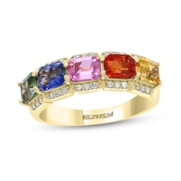 EFFY™ Collection Sideways Emerald-Cut Multi-Colour Sapphire and 0.145 CT. T.W. Diamond Five Stone Ring in 14K Gold