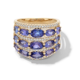 EFFY™ Collection Oval Tanzanite and 0.45 CT. T.W. Diamond Multi-Row Ring in 14K Gold