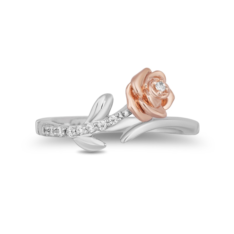 Enchanted Disney Belle 0.085 CT. T.W. Diamond Rose Bypass Ring in Sterling Silver and 10K Rose Gold