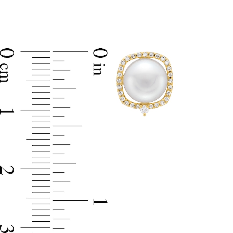 Freshwater Cultured Pearl and 0.145 CT. T.W. Diamond Cushion-Shaped Frame Stud Earrings in 10K Gold | Peoples Jewellers
