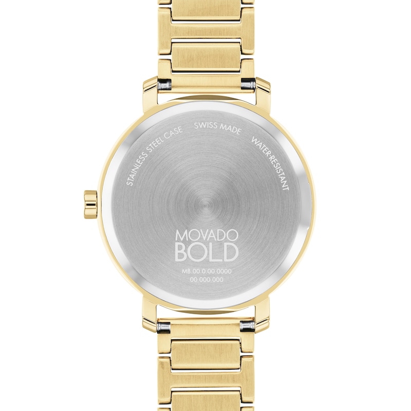 Have a question about Ladies' Movado Bold® Evolution Crystal Accent Gold-Tone IP Watch with Textured Tonal Gold-Tone Dial (Model: 3601106)?