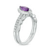 Marquise Amethyst and Lab-Created White Sapphire Frame Vintage-Style Bridal Set in 10K White Gold