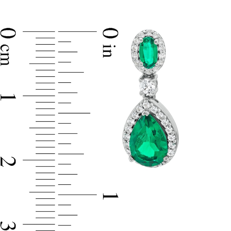 Pear-Shaped Lab-Created Emerald and White Lab-Created Sapphire Frame Dangle Drop Earrings in Sterling Silver | Peoples Jewellers