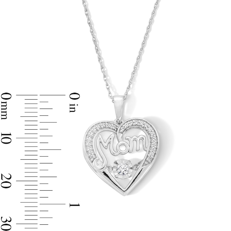 Need help with this Unstoppable Love™ 0.20 CT. T.W. Certified Lab-Grown Diamond "Mom" Heart Pendant in Sterling Silver (F/SI2)?